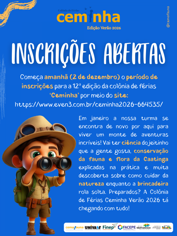 Campus Ciências Agrárias, BR 407, Km 12, lote 543, Projeto de Irrigação Nilo Coelho - S/N C1 CEP. 56.300-000, Petrolina - Pernambuco - Brasil - www.cemafauna.univasf.edu.br