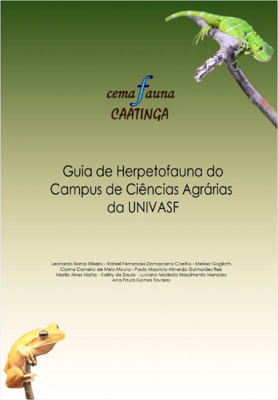 Foi lançado no ultimo dia 04/07/2014, no Cemafauna Caatinga, UNIVASF, o Guia de Herpetofauna do Campus de Ciências Agrárias da UNIVASF. Este é um trabalho conjunto entre professores e estudantes dos cursos de Ciências Biológicas e Medicina Veterinária.