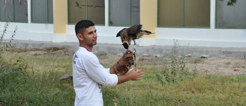 "Quando eu tinha mais ou menos 11 anos de idade, já acostumado a muitos animais silvestres por causa de um tio que tinha um serpentário, me apaixonei pelas aves de rapina quando ganhei um gavião, na época, machucado. Foi aí que comecei a estudar técnicas de falcoaria para treiná-lo", explica Lucas Cabral, estudante do curso de Medicina Veterinária da Universidade Federal do Vale do São Francisco (Univasf) e estagiário do Centro de Conservação e Manejo de Fauna da Caatinga (Cemafauna Caatinga).
