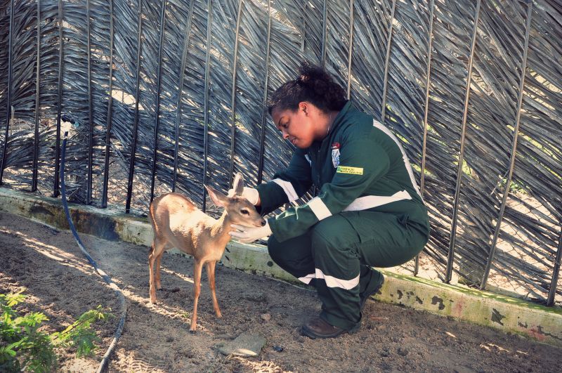Na última terça-feira, 03, chegou nas instalações do Centro de Triagem de Animais Silvestres do Centro de Conservação e Manejo de Fauna da Caatinga (Cemafauna Caatinga), um dos 38 programas básicos ambientais do Projeto de Integração do São Francisco (PISF) com as Bacias Hidrográficas do Nordeste Setentrional promovido pelo Ministério da Integração Nacional, uma jovem fêmea da espécie Mazama gouazoubira, conhecida popularmente como veado-catingueiro.