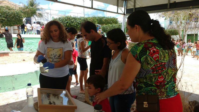 As estudantes Sarah Karoliny e Ana Carolina, dos cursos de Medicina Veterinária e Ciências Biológicas da Universidade Federal do Vale do São Francisco (Univasf) e estagiárias do Centro, mostraram parte do acervo das coleções científicas e ala de exposição do Museu de Fauna da Caatinga para o público que prestigiou o evento. “Nós agregamos valores em relação a fauna da caatinga. Tivemos a visita de um deficiente visual e ele pôde conhecer nossos animais taxidermizados ao tocar neles. É muito gratificante levar conhecimento para as pessoas!”, comemora Sarah.