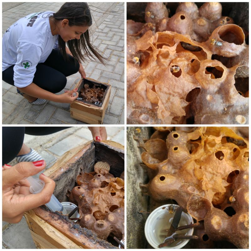 No Cemafauna, os estagiários se responsabilizam pela manutenção de colmeias de abelhas sem ferrão. A intensão é levar essas colônias para polinizar espécies em área urbana. “Manejamos as colmeias para que não haja impacto. As colônias estão no Cemafauna para estudo e exposição ao público, isso porque não se conserva o que não se conhece”, afirmou Aline.