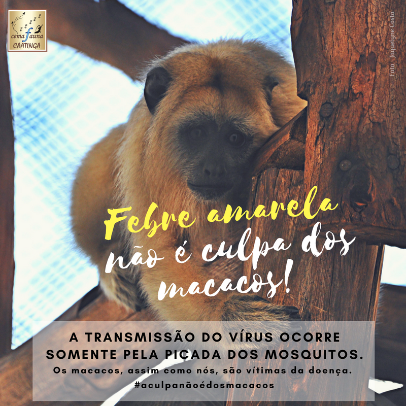 Pensando na conservação da fauna silvestre, o Centro de Conservação e Manejo de Fauna da Caatinga inicia a campanha 'Febre amarela não é culpa dos macacos!' para alertar a população local e comunidade acadêmica do Campus de Ciências Agrárias da Universidade Federal do Vale do São Francisco (Univasf), zona rural de Petrolina, sobre a importância da conscientização a respeito do ciclo de transmissão do vírus da Febre amarela que no país, de acordo com o mais recente boletim epidemiológico, de 1º de julho de 2017 a 6 de fevereiro de 2018, há registro de 353 casos, sendo destes 98 mortes.
