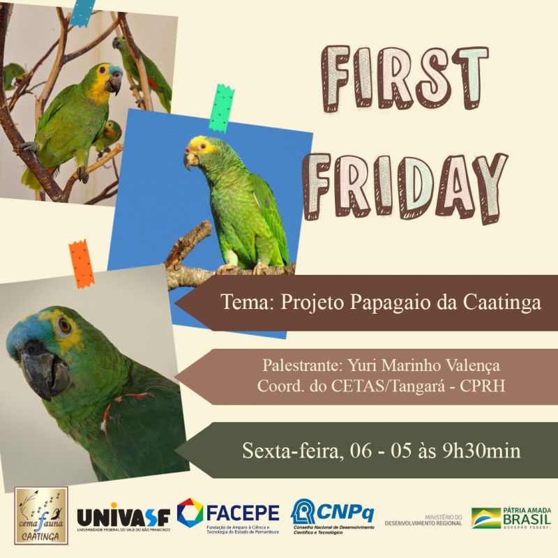 No dia 06 de Maio o Centro de Conservação e Manejo de Fauna da Caatinga - CEMAFAUNA, receberá o coordenador do CETAS - Tangará, Yuri Marinho, para uma palestra sobre o Projeto: Papagaio da Caatinga, desenvolvido em parceria com o CEMAFAUNA.